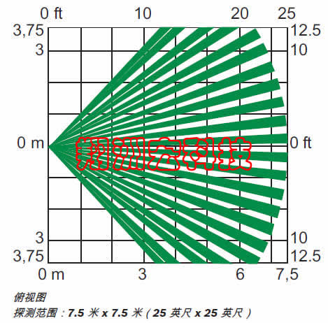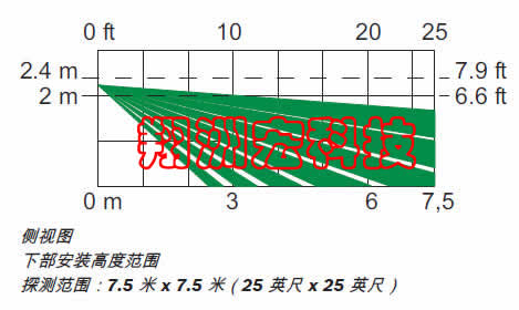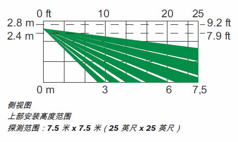 注解可選的安裝架會減少探測器的探測范圍,并會增加探測盲區。