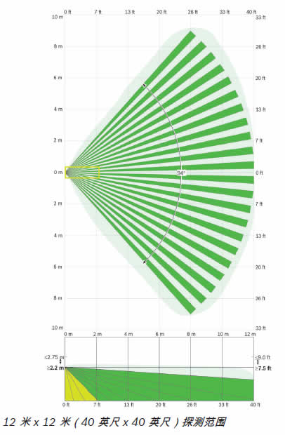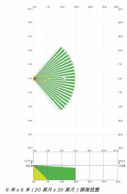 建議的安裝高度為 2.2 米至 2.75 米(7.5 英尺至 9 英尺),無需調(diào)節(jié)。