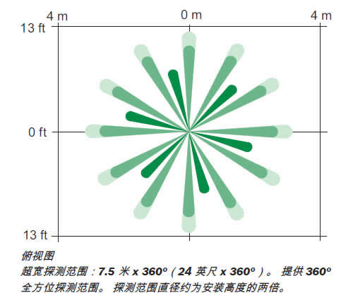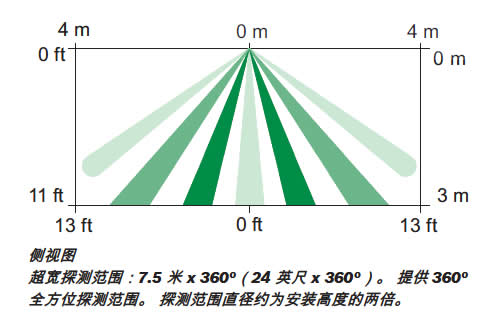 | DS936 超薄全方位被動紅外探測器 提供增強的信號處理功能,360°x 7.5 米 (24 英尺)全方位探測范圍,可以采用 表面安裝或以半嵌入式安裝在天花板 上。 |